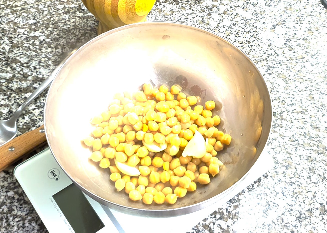 Rincez et égouttez les pois chiches sous l'eau froide. Vous pouvez également retirer la peau des pois chiches pour une texture plus lisse, mais ce n'est pas obligatoire.